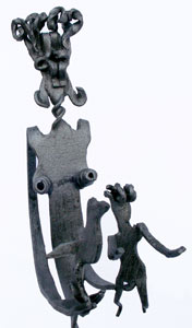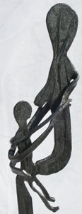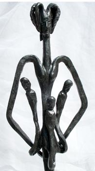 e dall'altro una donna gravida con le spalle più basse in segno di sottomissione."