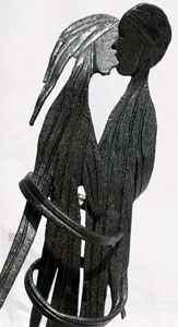 " L' opera rappresenta la donna aggredita con i capelli ritti dal terrore."