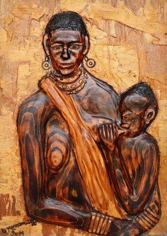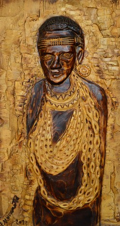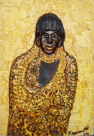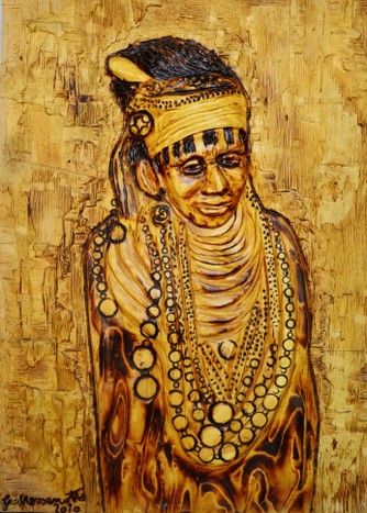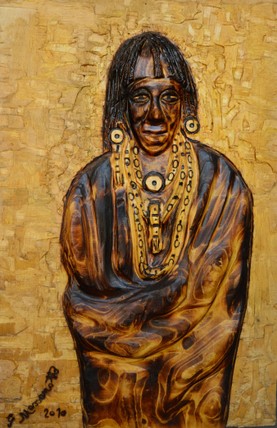 Quadri in legno scolpiti a mano con colorazione e sfumature eseguite a fuoco Ritratti indigeni